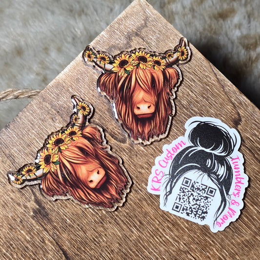 RTS Badge Reels - Highland Cow Sunflowers